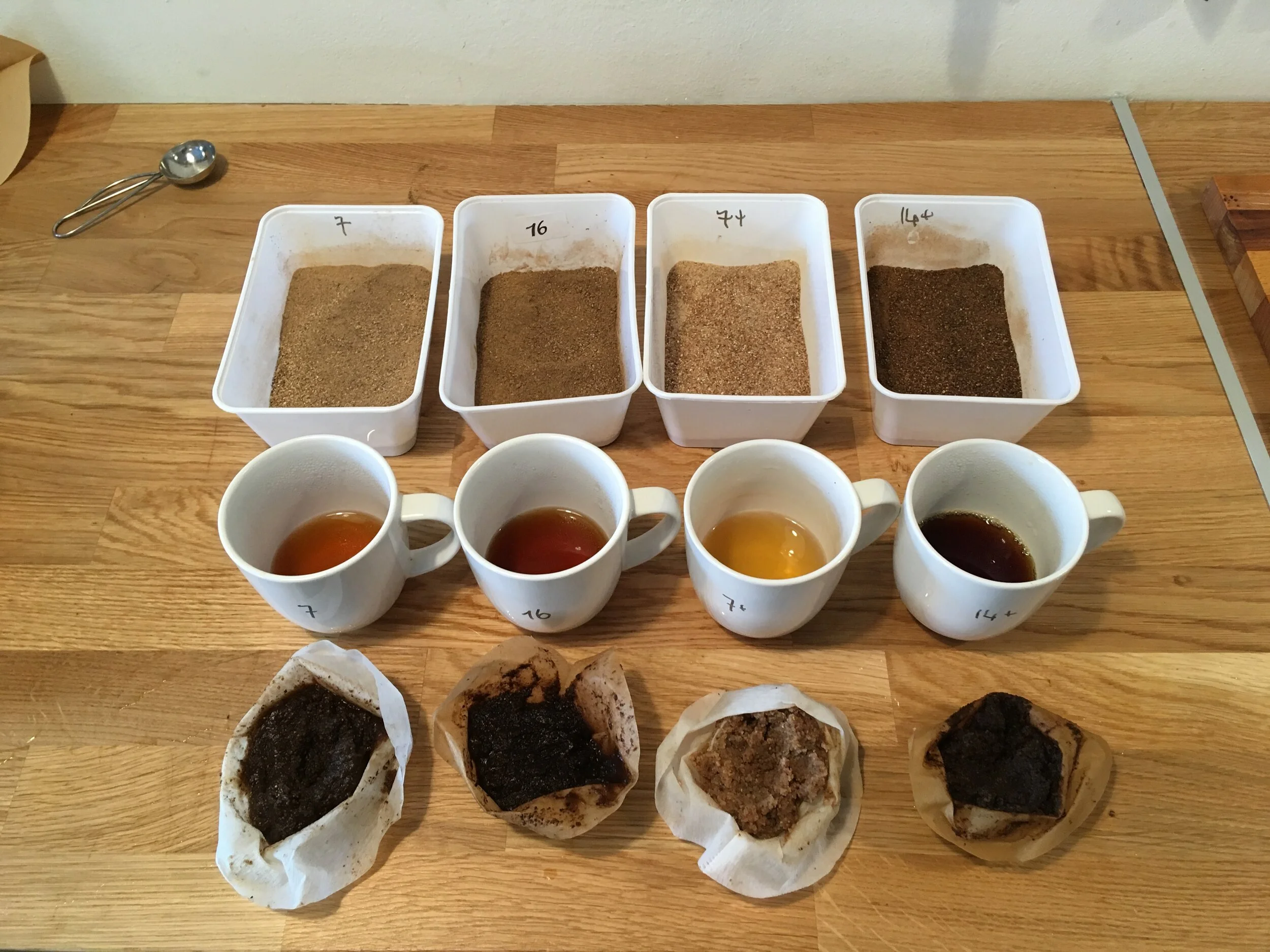 Just as with coffee beans, adjustments in the pre-processing of the grain, the way of roasting, the size of the grind and the method of making coffee all affect the taste and aroma of the coffee. This means that experimentation with rye as raw material for surrogate coffee is endless! For example: pre-cooking and drying of the grain before light roasting creates a sweet, almost popcorn-like taste. Medium roasting will provide a more caramel and nutty flavor while heavy roasting makes the surrogate coffee very bitter. The size of the grind effects the drip time and therefore the intensity of the flavor: a coarse grind allows water to flow through very quickly with little opportunity for flavor infusion, whereas if the grind is too fine, the high amount of fiber in the rye will swell and block any liquid from running through.